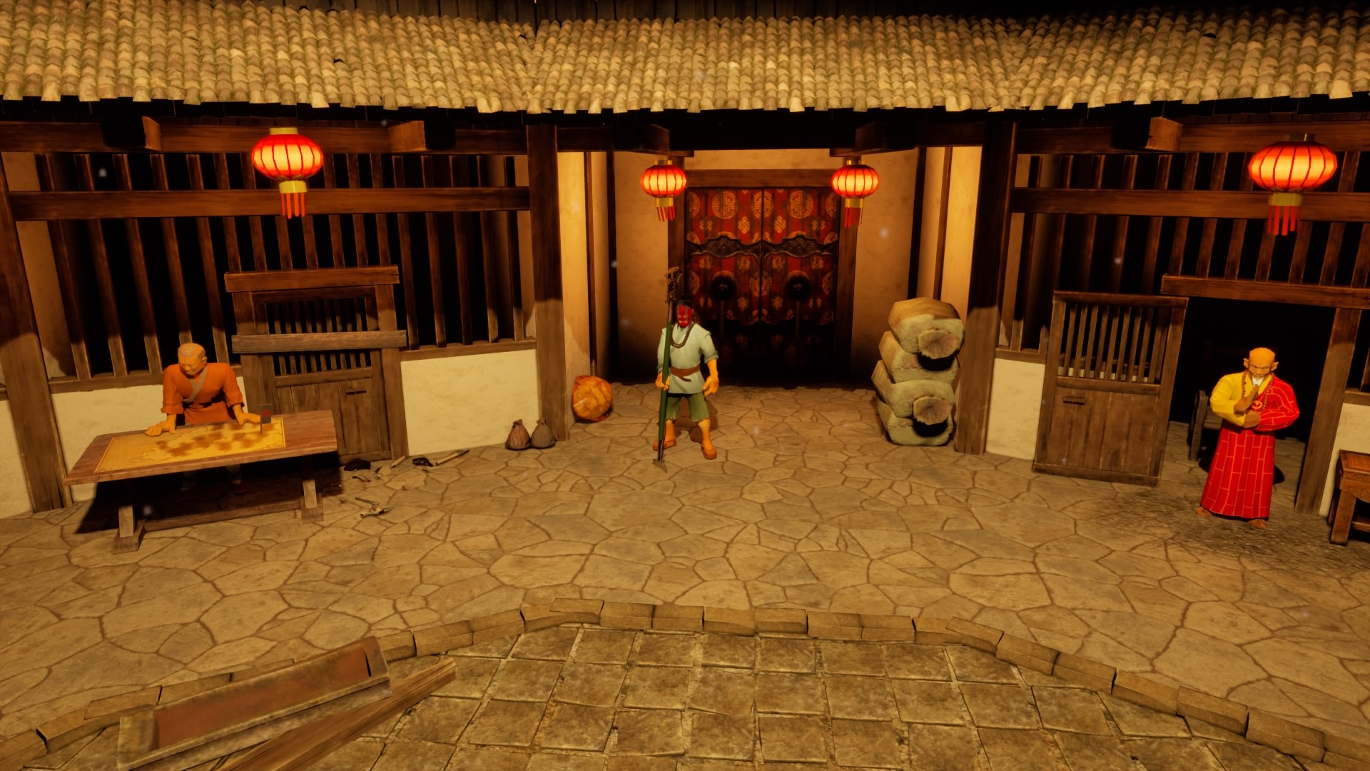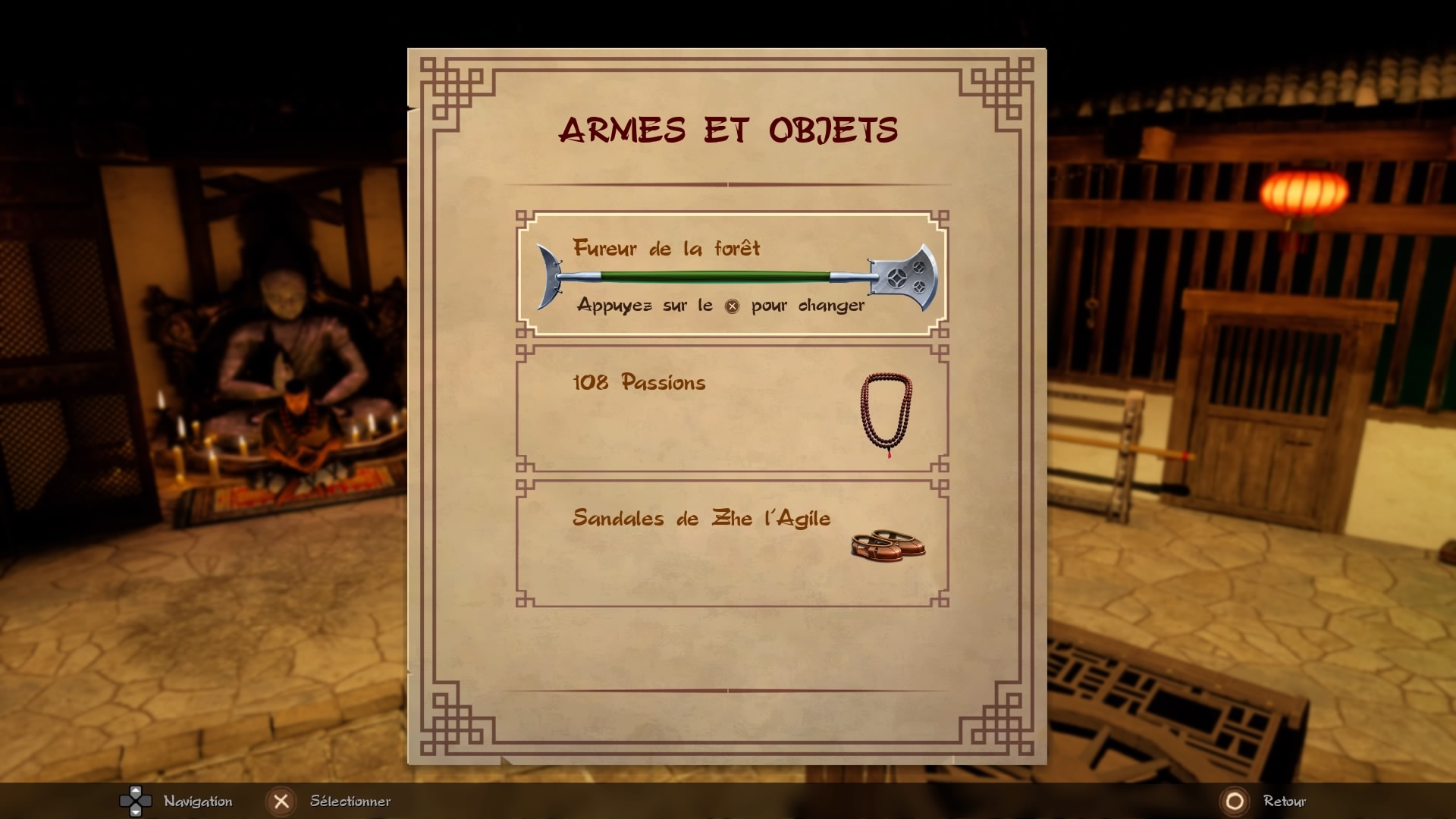 Entre chaque niveau, vous vous retrouverez au Temple des moines Shaolin. C’est plus un lobby dans lequel vous allez pouvoir changer d’armes ou d’équipements, discuter avec les moines, dépenser vos point d’expériences dans les différents arbres de compétences ou encore choisir vos missions à venir.